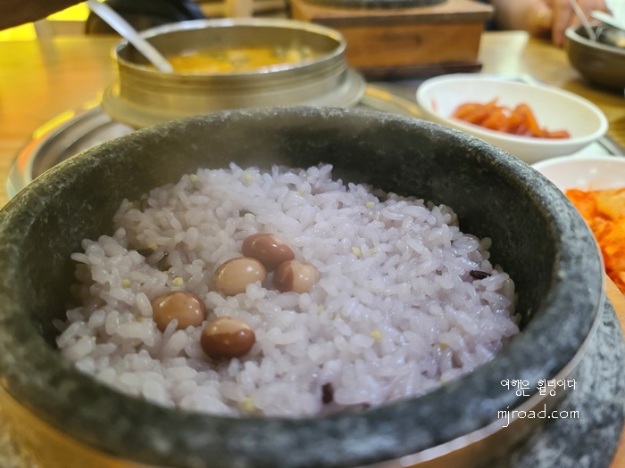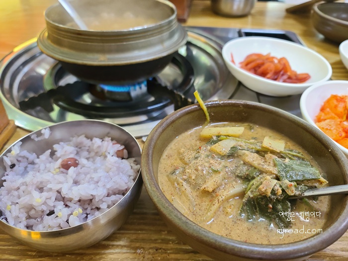 주문한 음식이 나왔다. 추어탕은 2인 분 분량으로 솥에 나와 한 번 더 끓여 먹는 방식이었고 밥은 돌솥밥으로 나왔다. 반찬은 여느 시골 음식점 마냥 소소하게 나왔다.