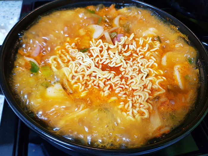 출출하고 입맛 없는 요즘..... 이렇게 맛있게 송탄식 부대찌개에 라면을 넣어 먹으면 한끼 든든한 식사가 되지 않을까요. 치즈가 들어 있기에 영양에서도 괜찮은 것 같더라고요. 개인적으로 김치가 들어가 있어 칼칼하고 시원해 좋았습니다. ^^