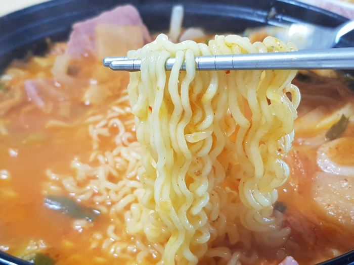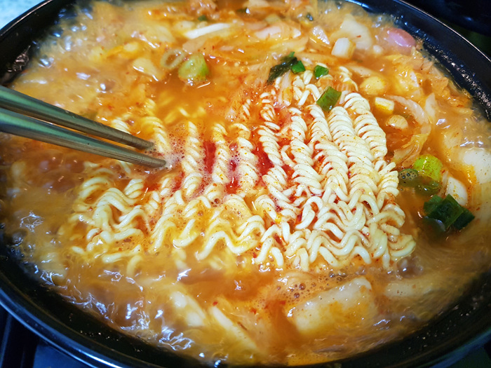 출출하고 입맛 없는 요즘..... 이렇게 맛있게 송탄식 부대찌개에 라면을 넣어 먹으면 한끼 든든한 식사가 되지 않을까요. 치즈가 들어 있기에 영양에서도 괜찮은 것 같더라고요. 개인적으로 김치가 들어가 있어 칼칼하고 시원해 좋았습니다. ^^