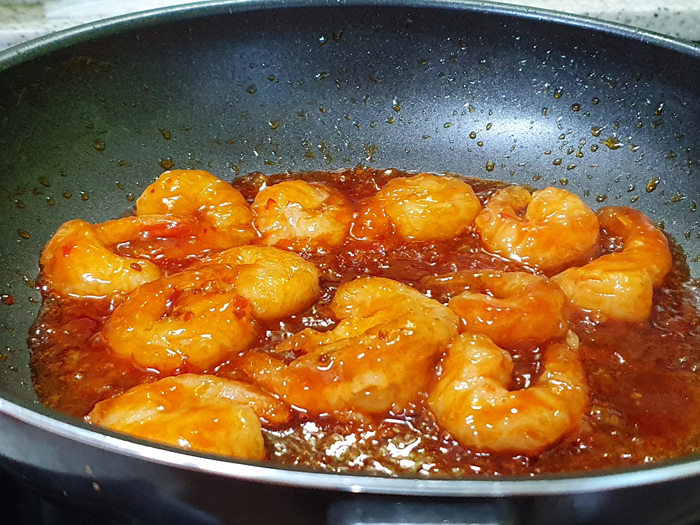 졸일수록 새우에 소스 간이 잘 입혀져 정말 맛있어요.