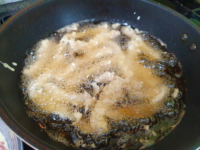기름 온도 확인은 반죽을 떨어 뜨렸을때 바르르 튀겨지며 올라오면 그때 고기를 넣고 튀기면 됩니다. 약 160~ 170도 ~