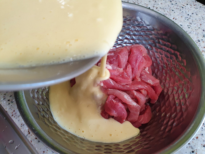 탕수육으로 먹을 고기는 두 번 튀기면 더 바삭하니 맛있습니다.