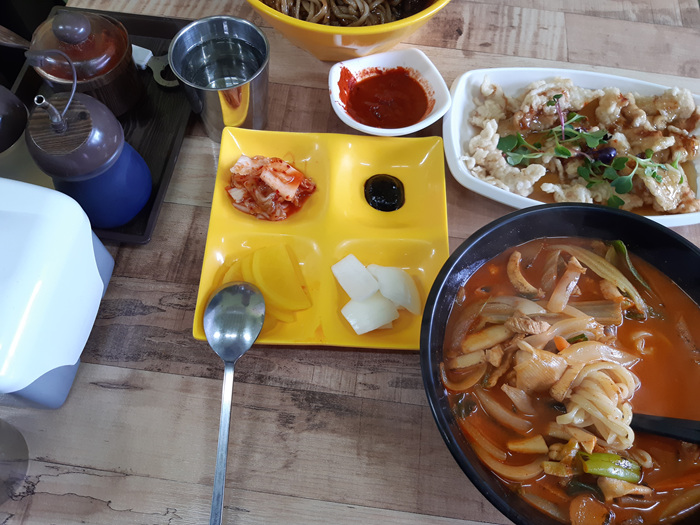 역시나 짜장면, 짬뽕, 탕수육을 주문했습니다. 이렇게 다 주문해도 13,000원 밖에 안 하니.....