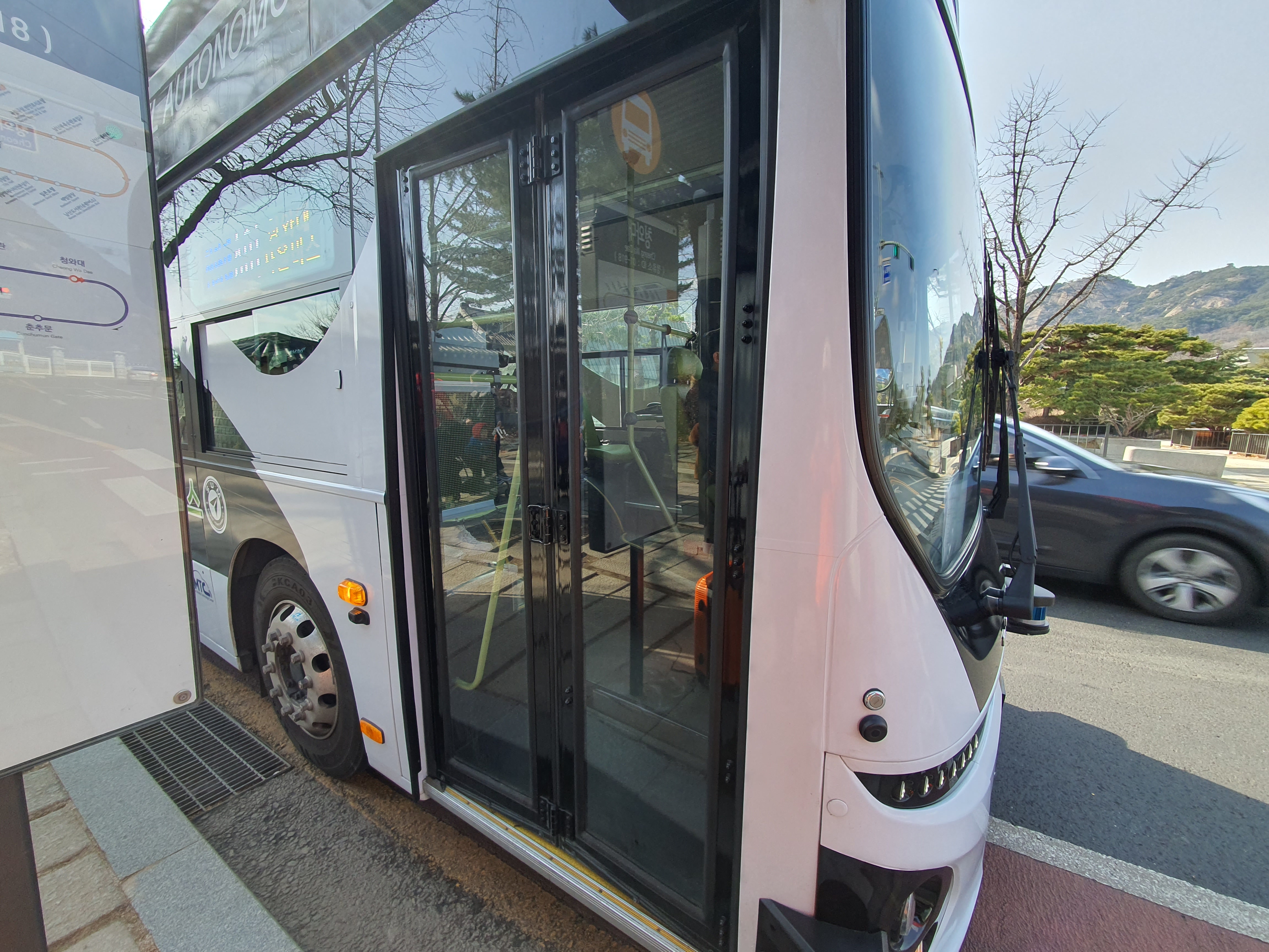 자율 주행버스이긴 하지만 안전을 위해 운전기사는 늘 앉아 있다. 근처 코스만 운행하니 청와대 가는 분들은 한번 타보는게 괜찮을 것 같다.