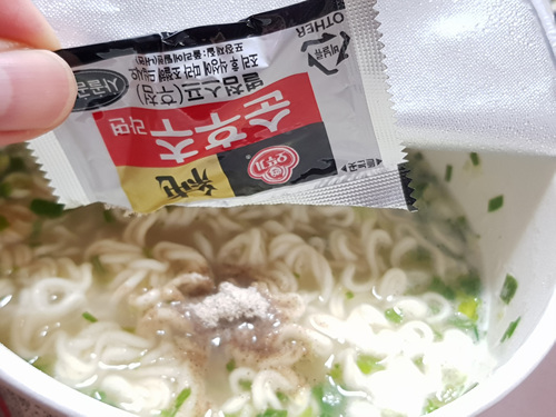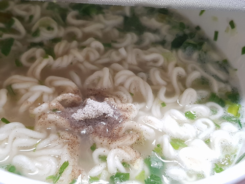 3분 후 후추가 들어간 분말스프를 넣어 잘 저어서 먹었습니다.