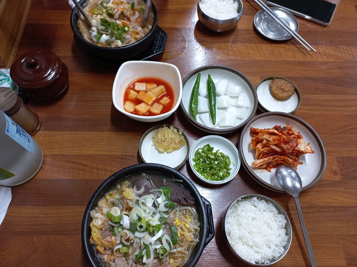 우린 내장탕과 해장국 하나씩 주문했습니다. 참고로 공기밥은 무한리필입니다.
