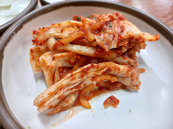 이곳에선 선지가 들어간 해장국과 내장이 듬뿍 들어간 내장탕 딱 2종류 메뉴만 있습니다. 음식을 주문하면 반찬은 깍두기, 김치와 고추,양파가 나옵니다. 사실 해장국에 이만한 반찬은 없을 것 같습니다. 김치 하나만 있어도 밥 한그릇은 뚝딱하니까요.