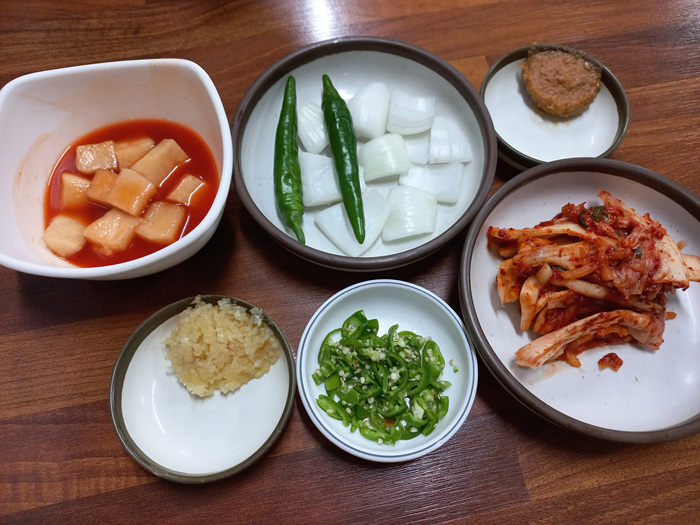 간마늘과 땡초 다진 것은 해장국, 내장탕에 넣어 먹는 양념입니다.