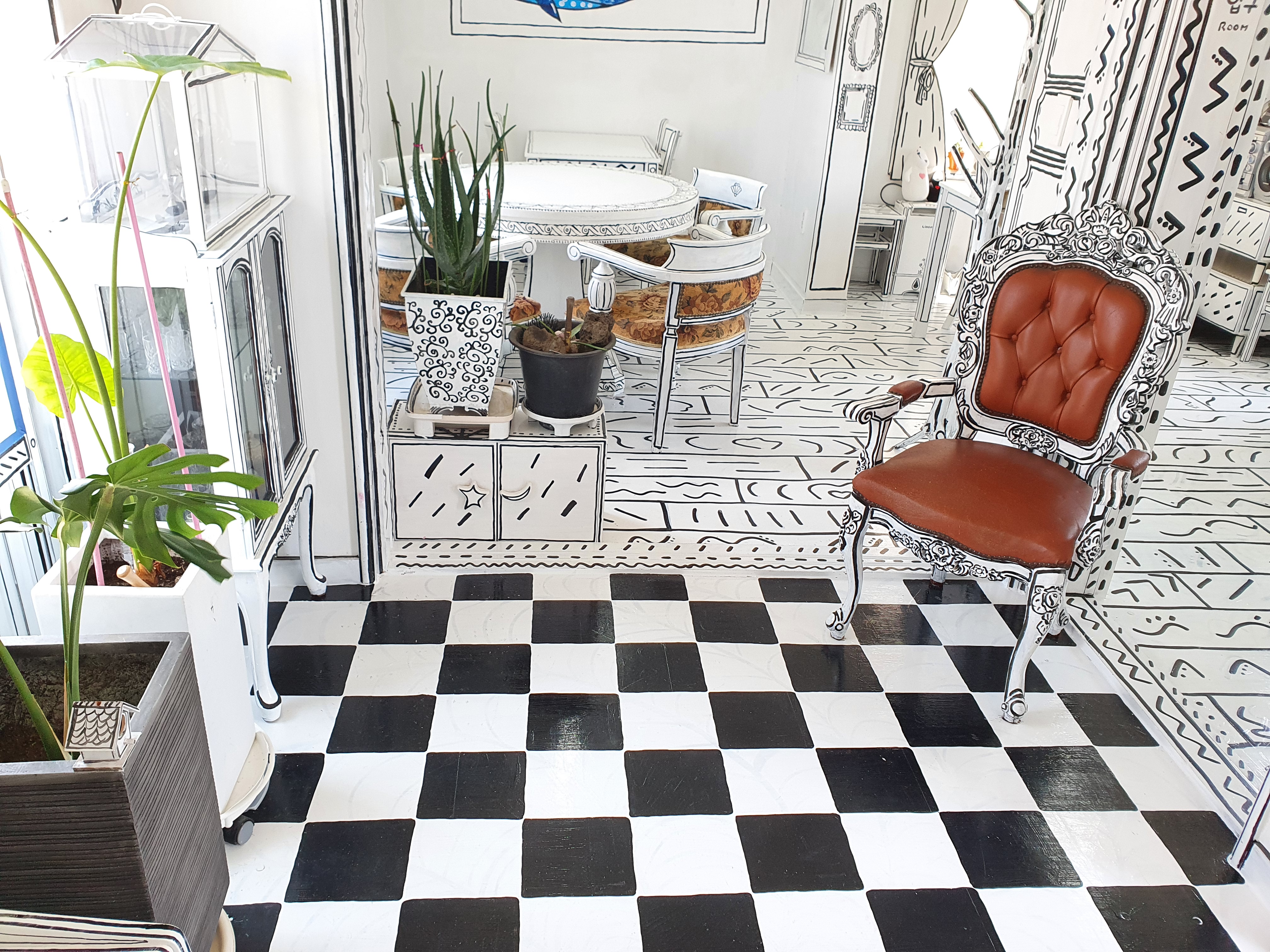모든 가전제품도 분위기에 맞게 다 그렸네요.