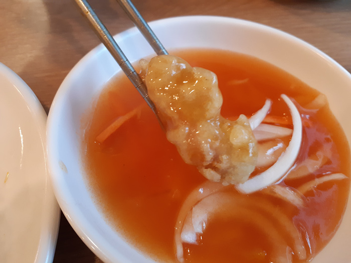 탕수육 소스는 정말 간단하게 채소가 들어간 모습...이런 소스는 처음이라 조금 당황... 하여간 8,000원에 푸짐한 탕수육이었습니다.