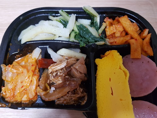 다 데운 후 다시 붙이니 도시락 하나가 완성되었네요.