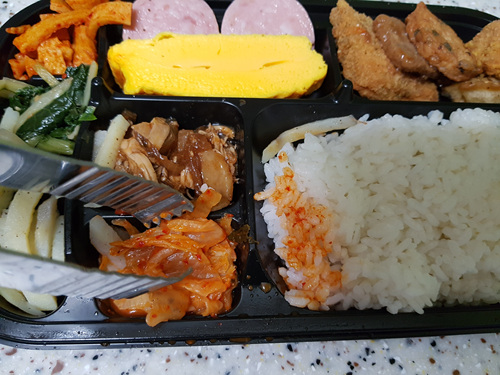 다 데운 후 다시 붙이니 도시락 하나가 완성되었네요.