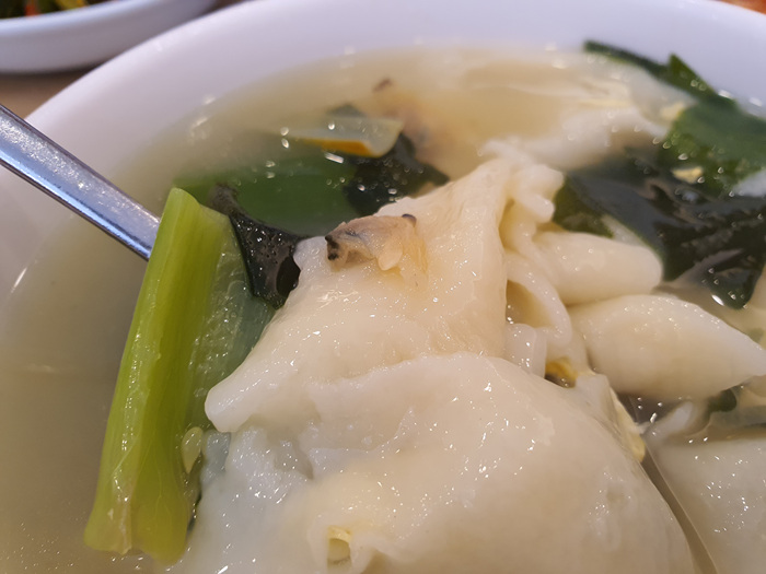 수제비도 얇아서 먹기 딱 좋았습니다. 마치 집에서 할머니께서 해 주시던 그 느낌 그대로 말이죠. 정말 손이 많이 가는 음식인데 가격도 착하고 양도 푸짐하고 무엇보다도 내용물에 미역, 굴까지 듬뿍 들어가 있으니 이런 곳은 널리널리 알려야죠.