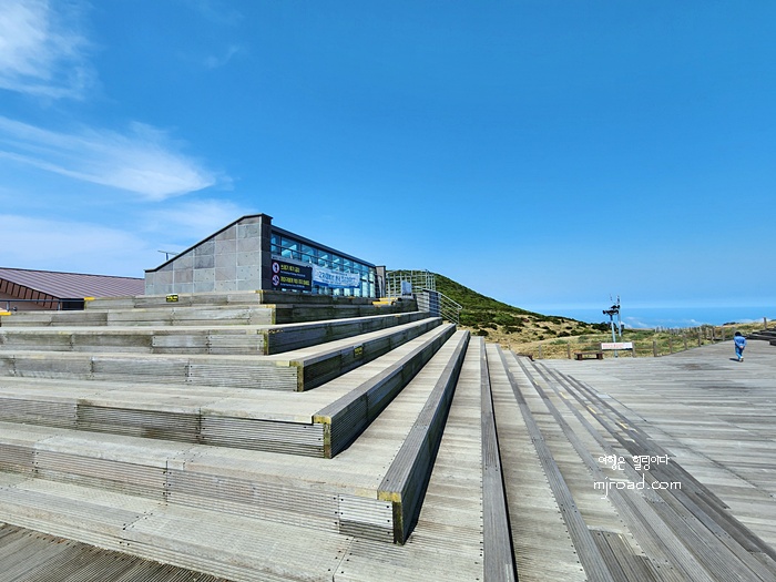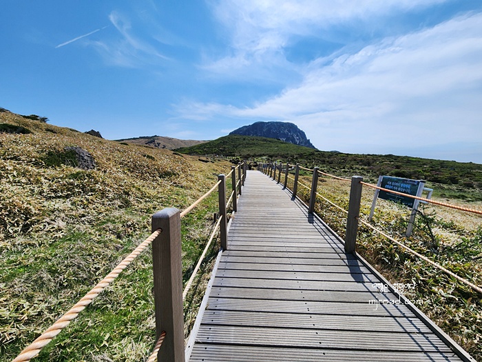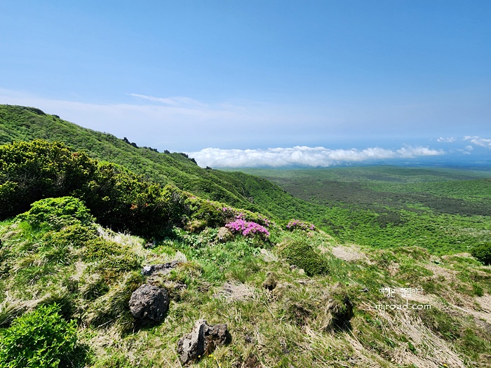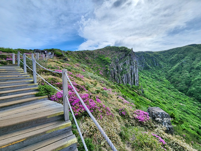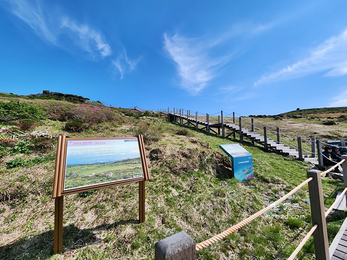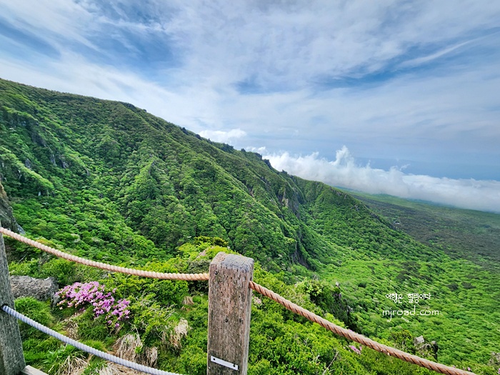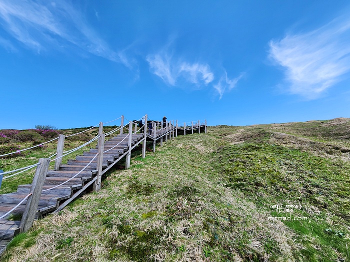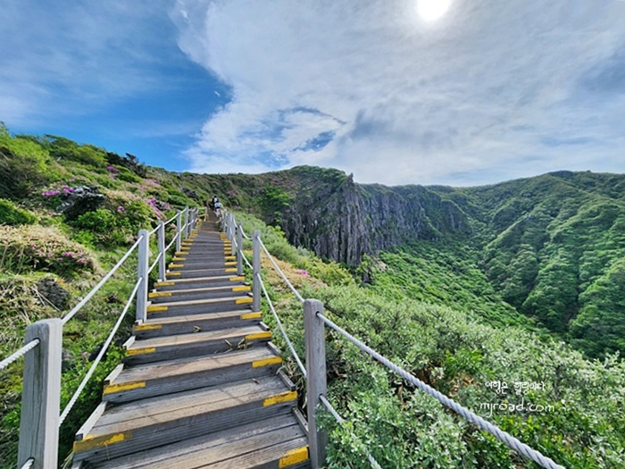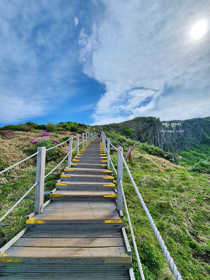 끝도 없어 보이는 나무계단이지만 주변 풍광을 보고 올라 가다보면 생각보다 다리도 아프지 않고 빨리 오르게 된다. 며칠 전까지만 해도 제주도에는 비도 오고 날씨도 계속 흐렸는데 그나마 내가 올라간 날에는 화창해서 너무 좋았던 것 같다.