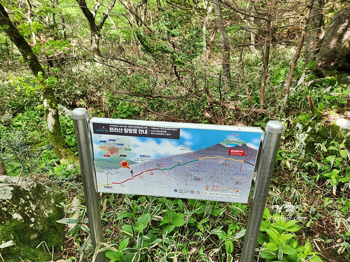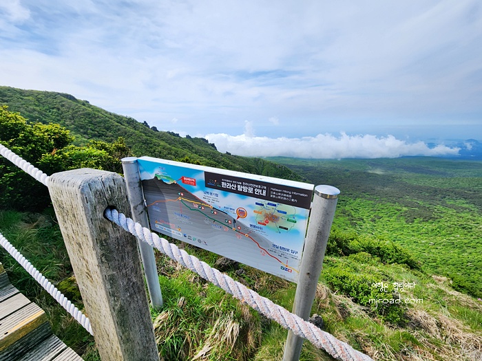 날씨도 좋고 바람도 살랑살랑 좋았던 입구에서의 시간이었다. 그런데 올라가면 갈 수록 바람이 꽤 차가웠다. 제주도 해안가 기온이 22도 정도였는데 이곳은 바람 때문인지 체감온도는 7~ 8도 정도 낮아 옷을 얇게 입고 갔던 친구는 추워 했다. 그런 친구의 모습에 내가 입고 있던 옷을 벗어 주니 고맙다고 이내 걸쳤다. 사실 나도 많이 추웠지만 육지에서 일부러 한라산 간다고 왔다가 감기라도 들면 안된다는 생각에 선뜻 겉옷을 벗어 주었다.
