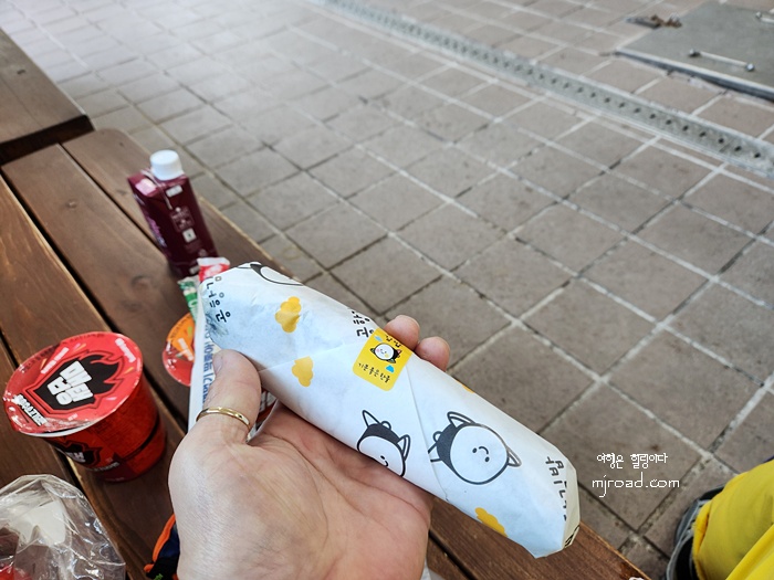 공항 근처 김밥집에서 사온 김밥과 라면을 같이 먹으니 꿀맛이다. 날씨가 좋으니 걷기도 더 좋았고 풍경 보느라 다리 아픈 줄도 모르고 올라 온 듯 하다.