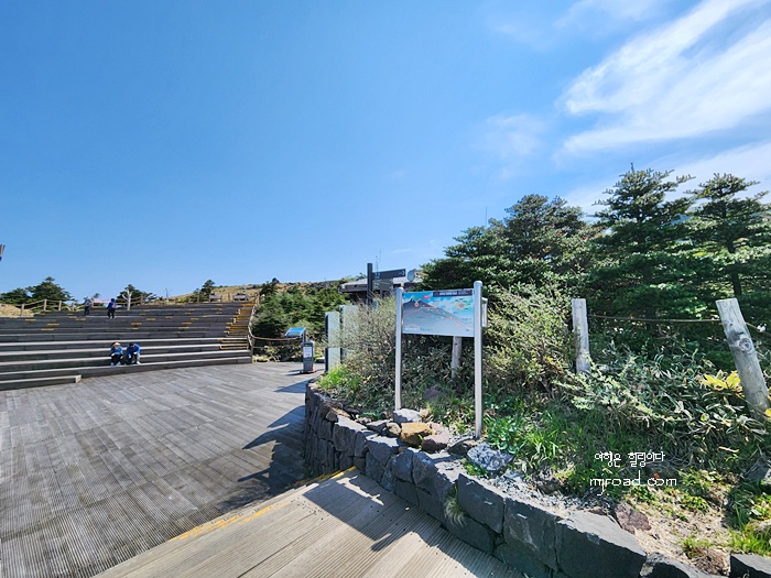 날씨도 좋고 바람도 살랑살랑 좋았던 입구에서의 시간이었다. 그런데 올라가면 갈 수록 바람이 꽤 차가웠다. 제주도 해안가 기온이 22도 정도였는데 이곳은 바람 때문인지 체감온도는 7~ 8도 정도 낮아 옷을 얇게 입고 갔던 친구는 추워 했다. 그런 친구의 모습에 내가 입고 있던 옷을 벗어 주니 고맙다고 이내 걸쳤다. 사실 나도 많이 추웠지만 육지에서 일부러 한라산 간다고 왔다가 감기라도 들면 안된다는 생각에 선뜻 겉옷을 벗어 주었다.
