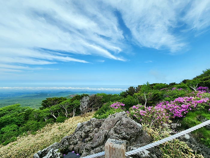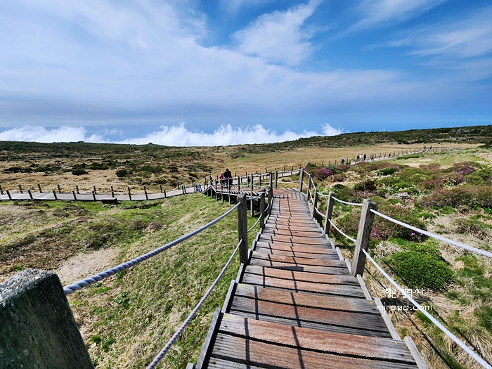 끝도 없어 보이는 나무계단이지만 주변 풍광을 보고 올라 가다보면 생각보다 다리도 아프지 않고 빨리 오르게 된다. 며칠 전까지만 해도 제주도에는 비도 오고 날씨도 계속 흐렸는데 그나마 내가 올라간 날에는 화창해서 너무 좋았던 것 같다.