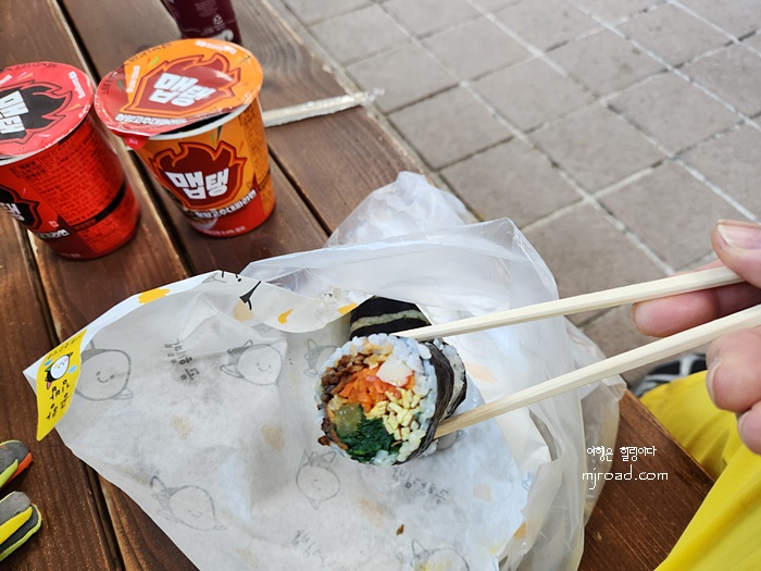 공항 근처 김밥집에서 사온 김밥과 라면을 같이 먹으니 꿀맛이다. 날씨가 좋으니 걷기도 더 좋았고 풍경 보느라 다리 아픈 줄도 모르고 올라 온 듯 하다.