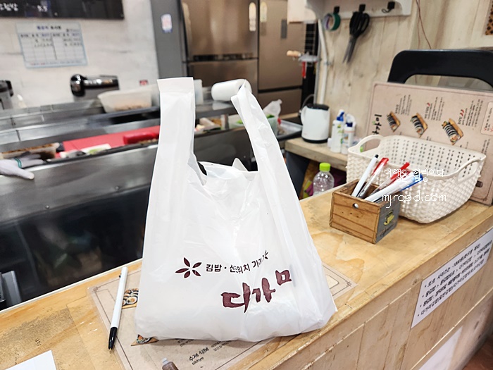 제주도 3대 김밥이라고 소문이 자자한 다가미 김밥집은 늘 사람들로 북새통을 이루는 곳이다. 그런데 경기가 안 좋아진 건지 아님 바쁜 시간이 아닐 때 갔는지 다행히도 사람들이 없어 예약한 지 10분도 안되어 도착했는데도 기다리는 손님이 없어 바로 테이크아웃을 해 올 수 있었다.