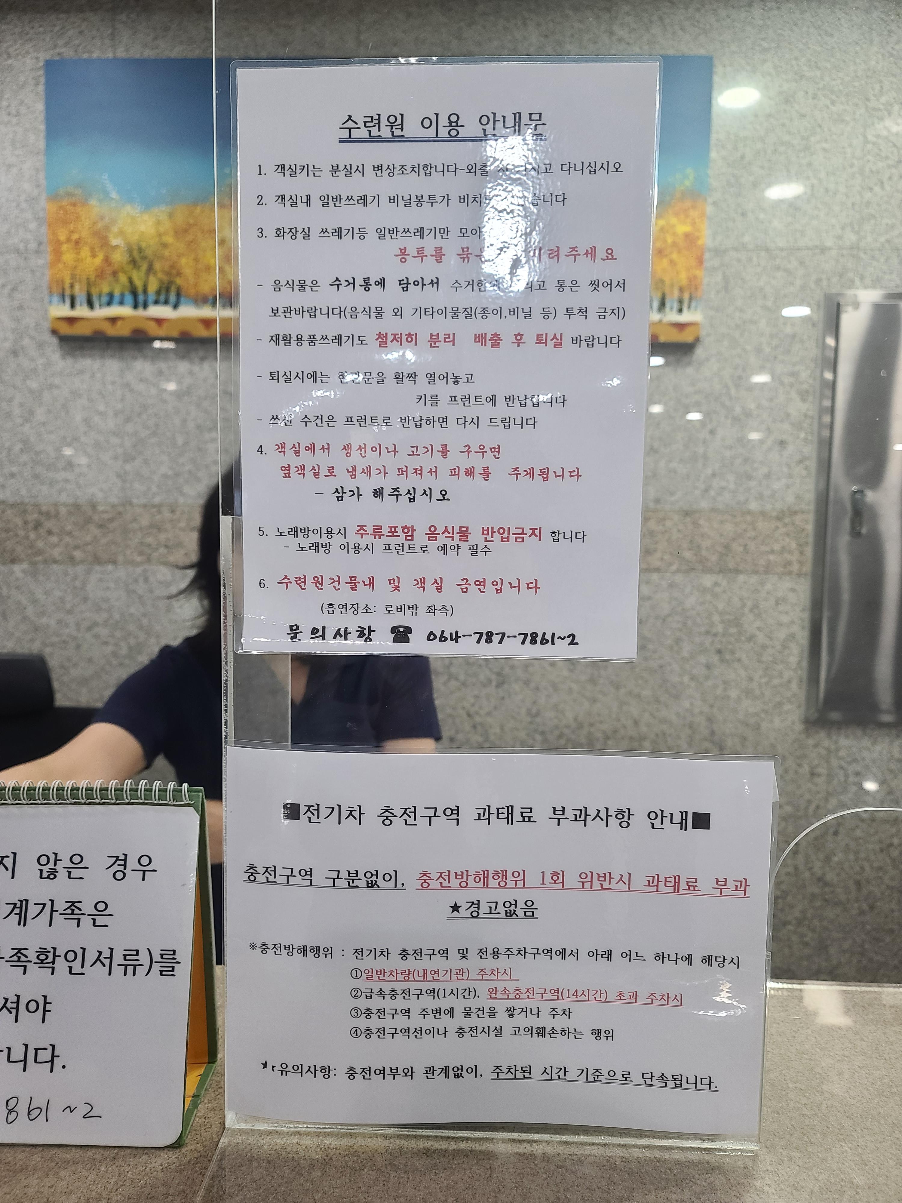 안내데스크에 가면 예약 확인을 하고 수련원에 머물면서 이용해야 할 안전수칙을 이야기해 주십니다. 우린 여기서 2박을 하기로 했어요.