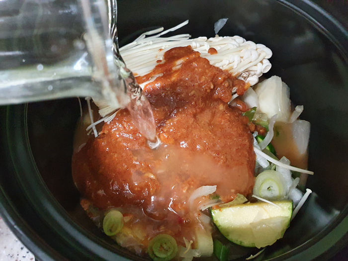 참고로 물은 꼭 레시피대로 지켜야 싱겁지나 짜지 않게 된장찌개를 맛 볼 수 있습니다. 물 500ml 정확히 지켜야 해요.