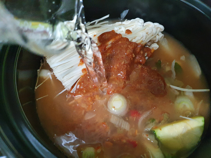 참고로 물은 꼭 레시피대로 지켜야 싱겁지나 짜지 않게 된장찌개를 맛 볼 수 있습니다. 물 500ml 정확히 지켜야 해요.