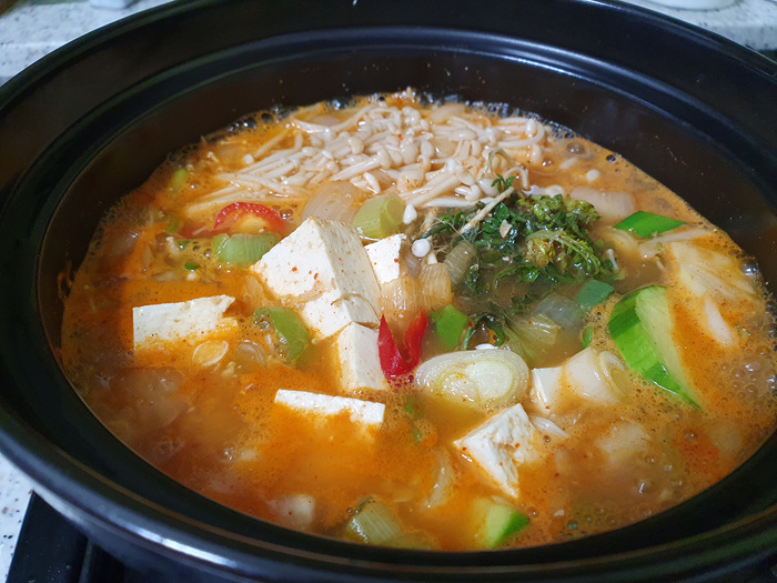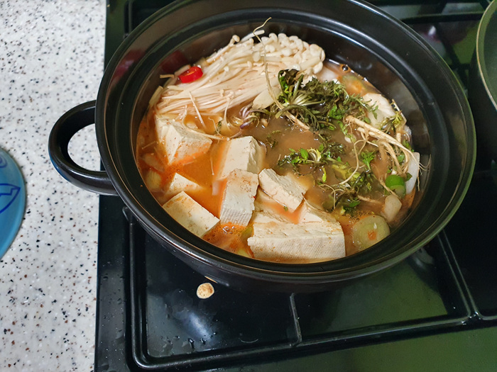 된장찌개가 끓어가니 구수한 봄 냄새가 솔솔 났습니다. 생각보다 생 냉이가 많이 들어가 있어 그런 것 같아요.