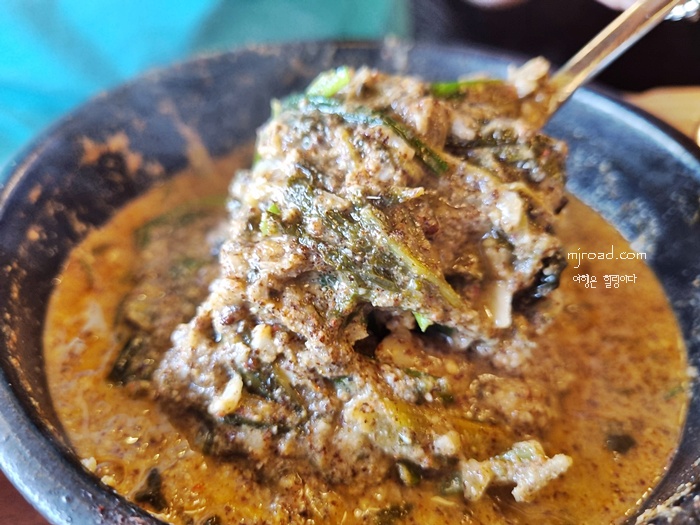 푹 끓여진 추어탕에 마늘 듬뿍, 땡초, 산초를 넣어 먹으면 완전 밥도둑이 따로 없다. 간도 그리 세지 않아 국물을 다 먹을 정도다. 물론 그 다음엔 물을 많이 마시긴 하지만... 하여간 그만큼 내 입맛에 맞다는 이야기도 되겠다.
