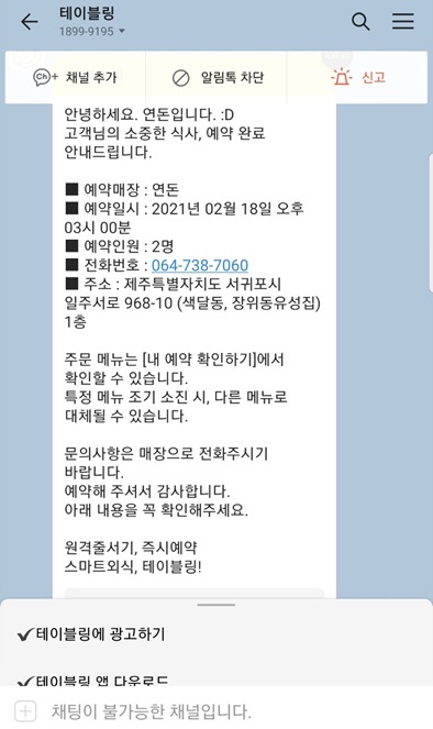 예약이 되면 자세한 안내공지와 주소가 카카오톡으로 들어 옵니다. 그리고 예약한 당일에 몇 번의 안내문자도 보내주니 까 먹는 일 없이 예약된 가서 음식 잘 드시길요..