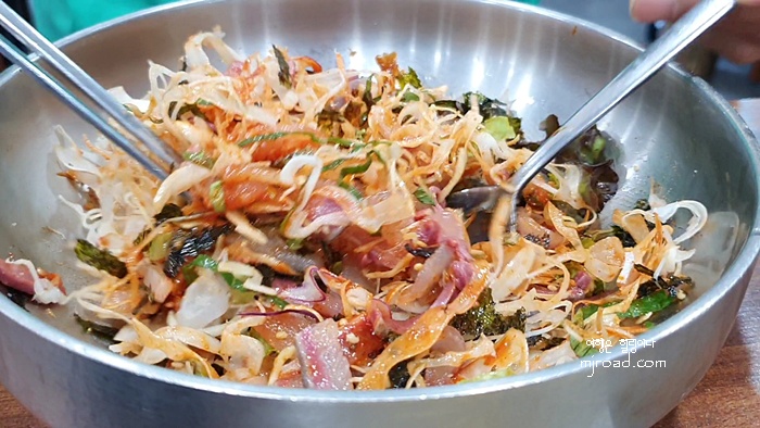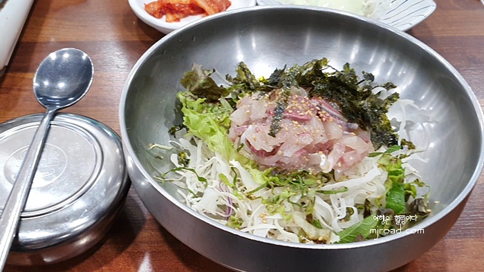 입맛 없을때는 초고추장에 밥과 채소만 비벼 먹어도 맛있는데 싱싱한 회까지 들어가 있으니 더이상 말할 것도 없다.