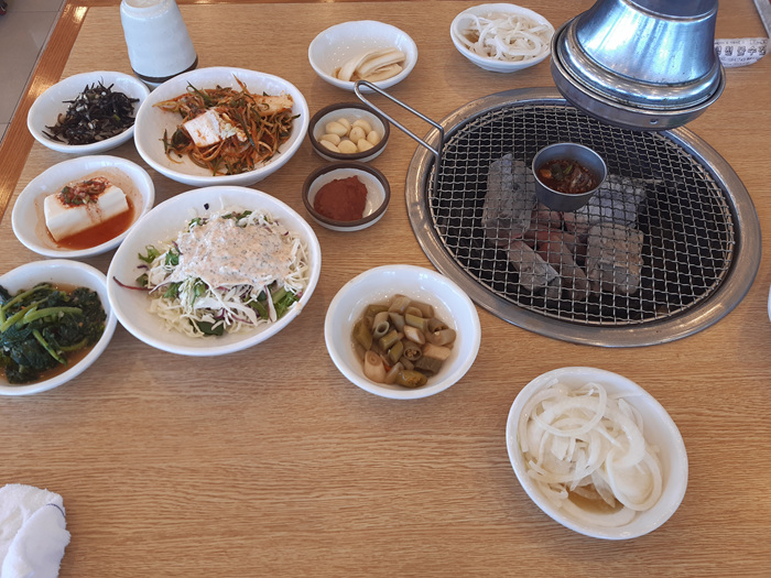 고깃집으로 유명한 이곳은 점심특선으로 흑돼지&돌솥밥을 단돈 만원에 제공합니다. 반찬도 여느 고기집 세팅과 견주어도 손색이 없습니다.