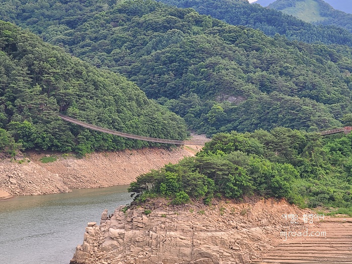 나는 옥순대교 바로 옆 옥순봉에 갔는데 거기도 나름대로 힘들지도 않고 옥순봉에서 내려 다 보는 풍경도 가히 절경이었다. 내가 간 날이 비가 계속 오지 않은 탓에 충주호의 수위가 높지 않아 더 멋진 풍경은 보지 못했지만 그래도 옥순봉에서 바라보는 충주호와 출렁다리는 절경 그자체였다.
