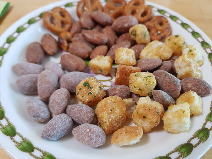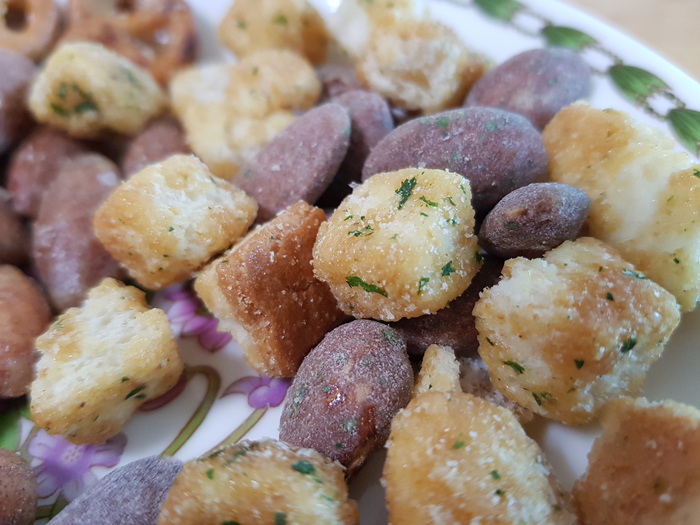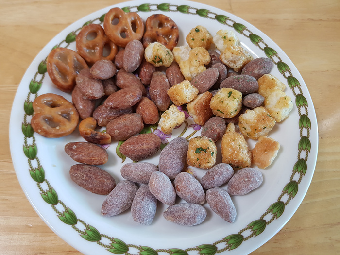개인적으로 제일 맛있었던 것은 마늘빵 맛 아몬드였습니다. 마늘빵 과자랑 마늘빵 맛이 나는 아몬드가 적절하게 들어 있어 괜찮았습니다. 간식으로 먹기에 이게 제일 괜찮았습니다.