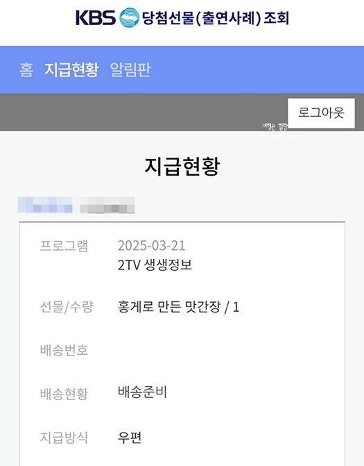 방송에서 당첨되어 선물 받다