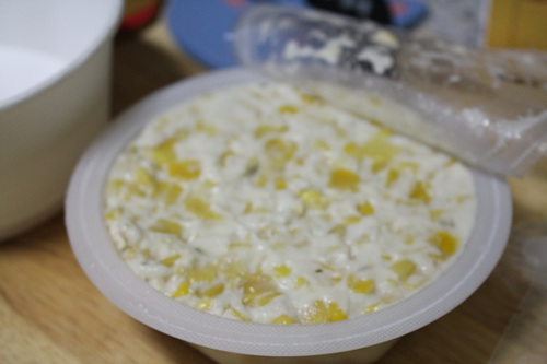 통에 콘치즈그라탕과 모짜렐라치즈를 섞어서 전자렌지에 1분 30초만 돌리면 됩니다.